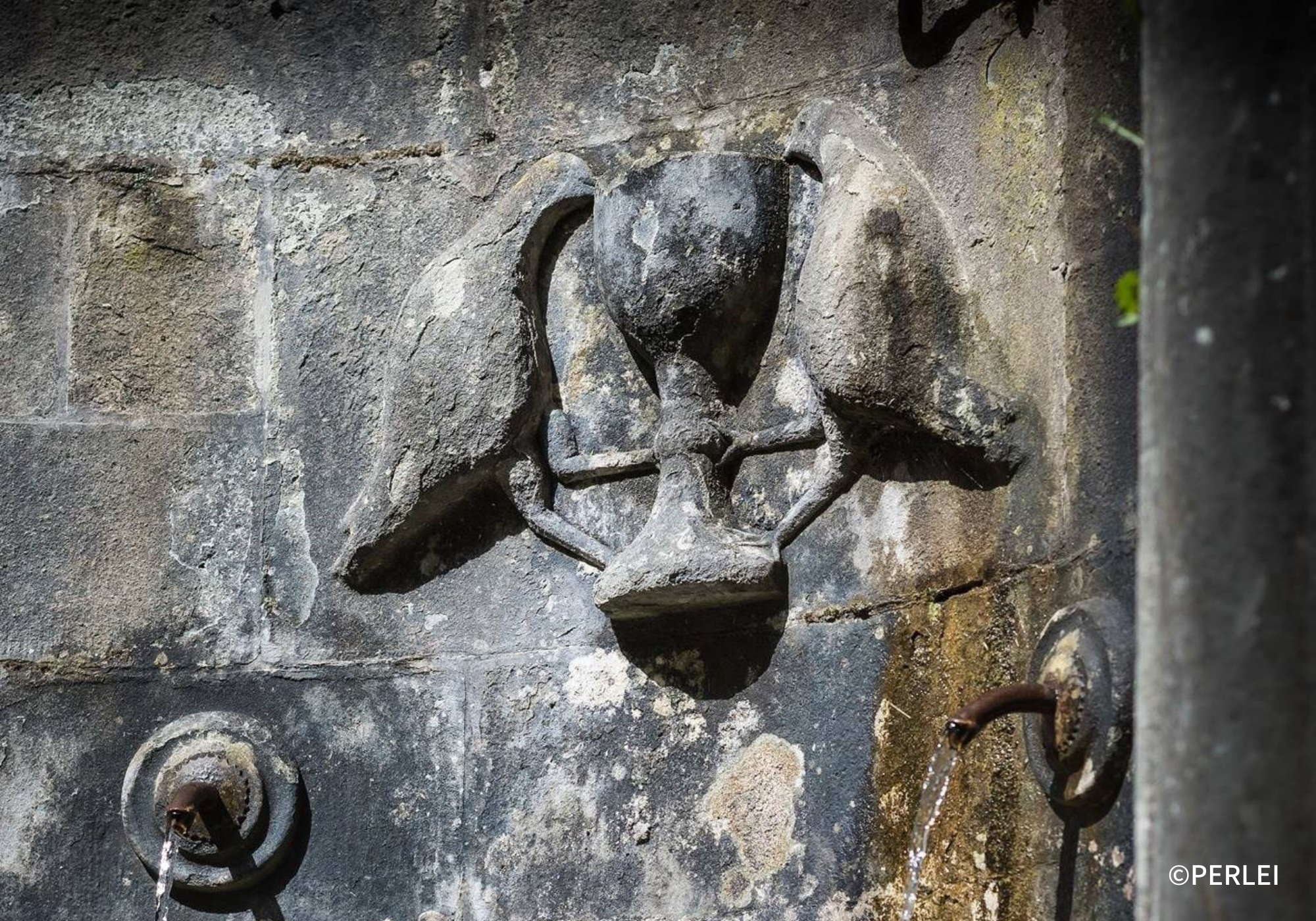 そんな2羽の鳩が1つの聖杯から水を飲む姿は「神への献身」という源から「修道院」と「サクロエレモ」の二つの活動が生まれ、それによりカマルドリ共同体が成り立っていることを示しています。