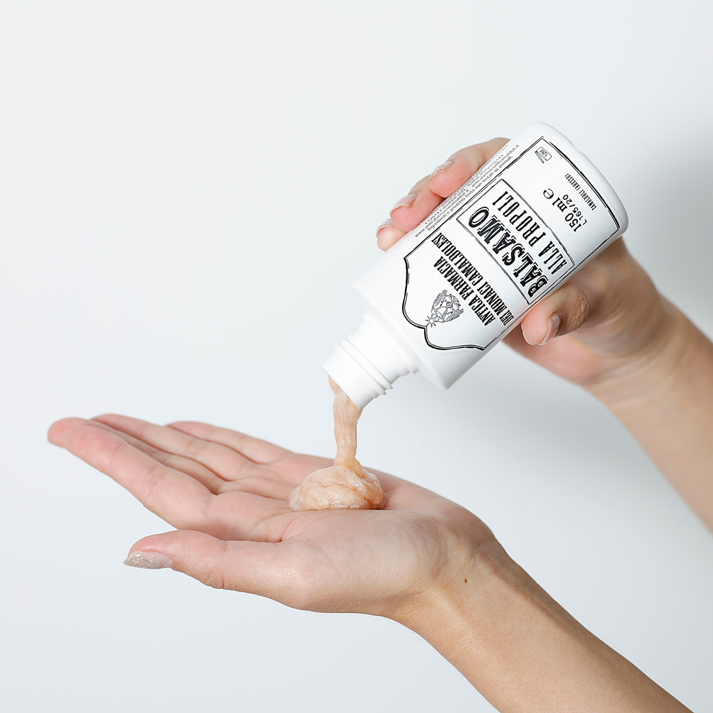 濃厚でぽってりとしたテクスチャーのヘアコンディショナー。 プロポリス配合で髪のパサつきや乾燥を抑え、毛先まで潤いを届けます。特に乾燥やダメージが気になる部分には、揉み込むようになじませて。プロポリスとフローラルの華やかな香り。